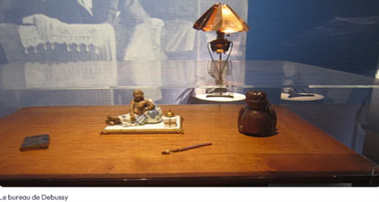 - Les objets japonais étaient pour Debussy une forme d’inspiration par la beauté des matières, la pureté des formes, la finesse de la porcelaine chinoise. Il en avait décoré son bureau