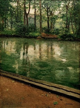 « L’Yerres, pluie » est un tableau de Gustave Caillebotte réalisé en 1875. Effet des ondes qui se propagent.