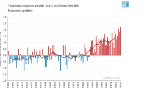 Depuis 1850-1900, la température de surface planétaire a augmenté de 1,5°C. Celle de la France métropolitaine s’est élevée de 1,8°C depuis 1900.
