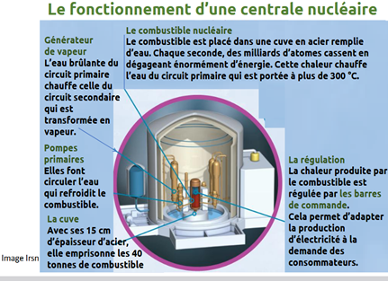 De la chaleur est produite grâce à la fission, que l’on capte pour la transformer en électricité. Mais la fission entraîne une réaction en chaîne qui doit impérativement être maîtrisée. Dans la centrale, des barres de contrôle et de l’eau borée permettent d’absorber les neutrons afin de contrôler la réaction. Au moindre écart, des automatismes arrêtent la réaction.