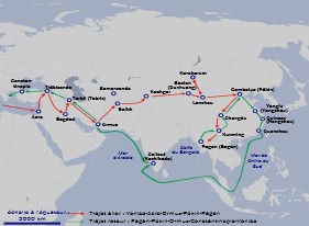Les marchands continuent par voie de terre. Marco Polo raconte l’histoire du Vieux de la montagne et de ses Assassins (le nom donné aux membres de cette secte vient de haschich, car ils avaient l’habitude de consommer cette drogue) : un sultan, disciple de Mahomet, pouvait commander n’importe quel assassinat, exécuté par ses combattants qui lui étaient entièrement dévoués. Ils furent ensuite éliminés par les tartares.